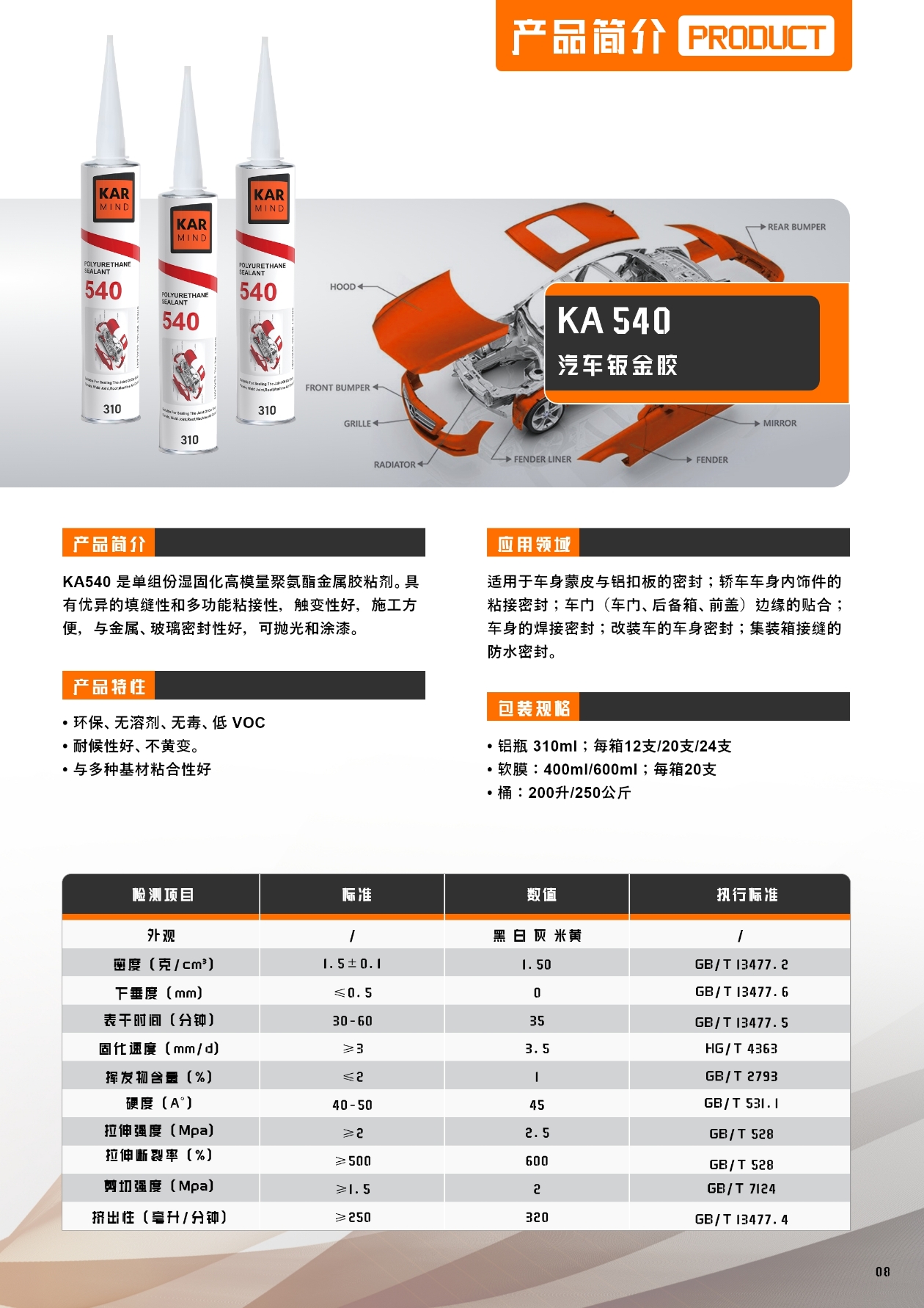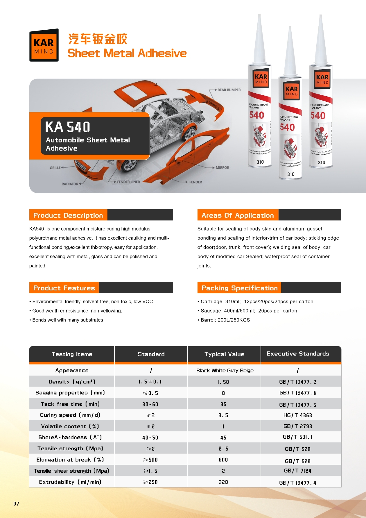 KA540 聚氨酯汽车钣金胶 Metal Sheet Polyurethane Sealant