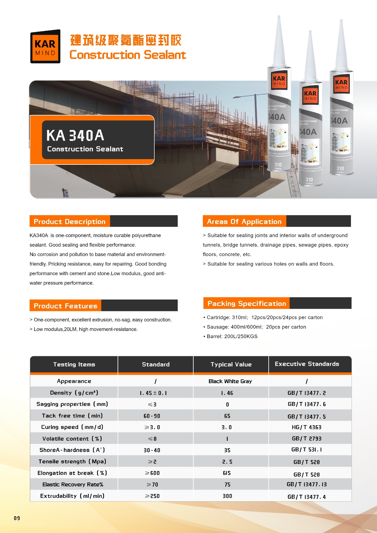 KA340A 低模量聚氨酯建筑密封胶 Low Modulus Construction Polyurethane Sealant